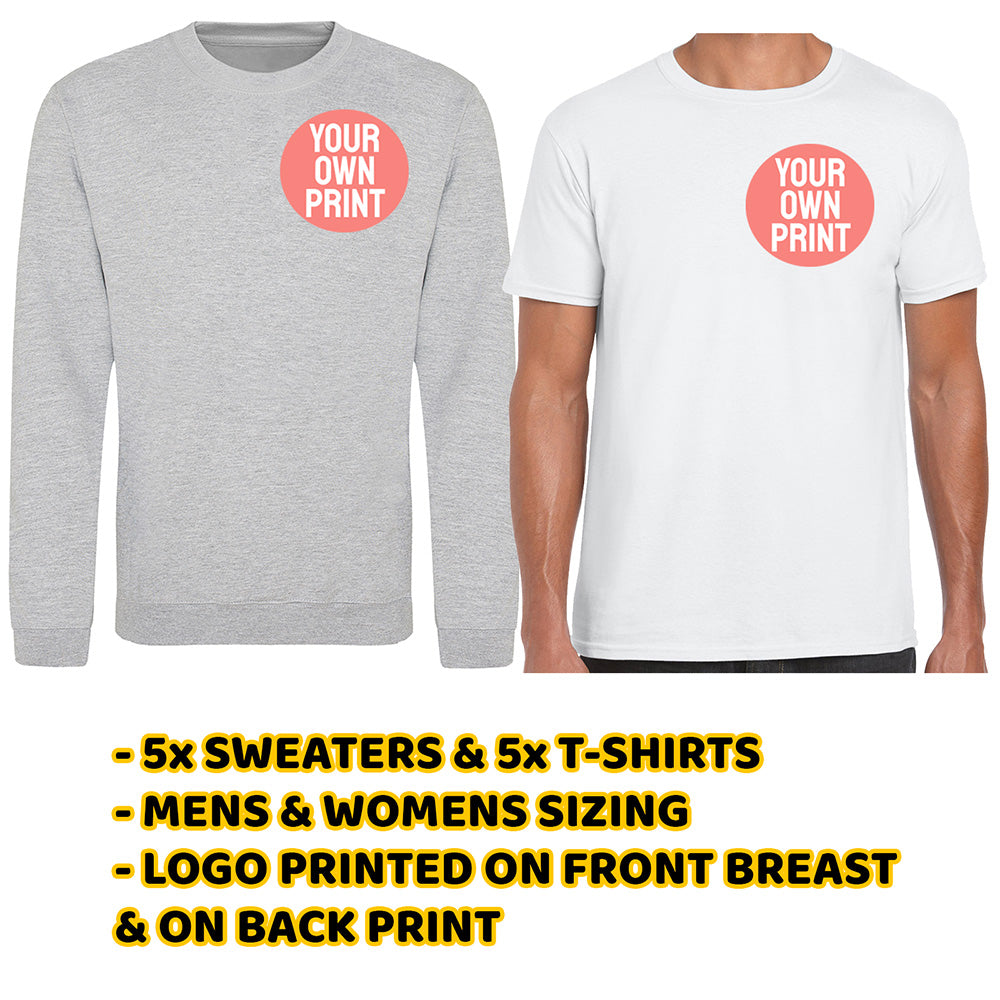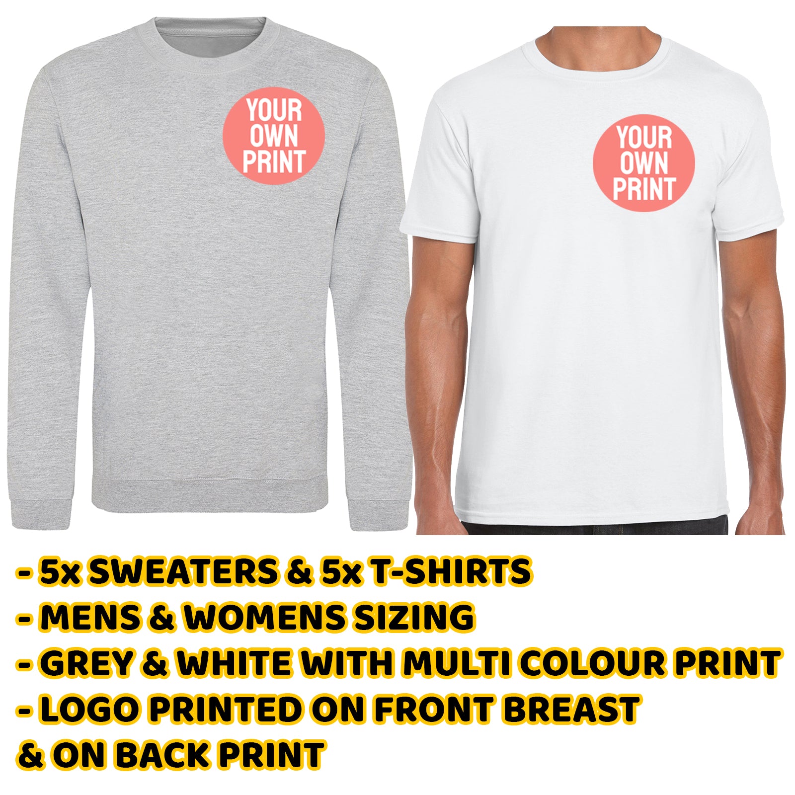 5x Grey Sweaters & White T-Shirts - Front & Back Print